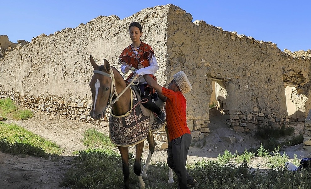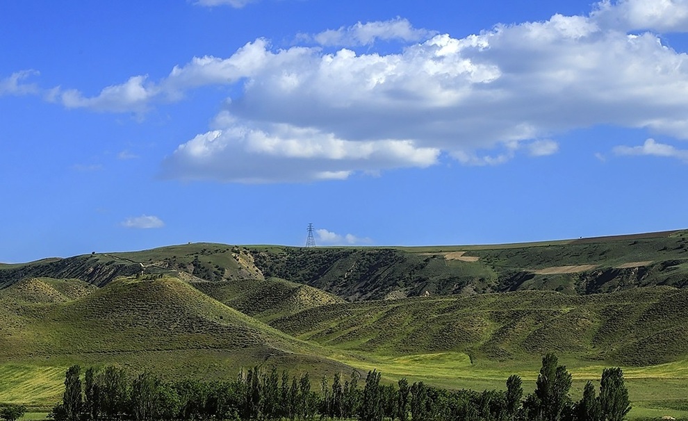آبی آسمان با لکههای سفید ابرها به دشتها و تپههای کم ارتفاعی میرسد که سبز روشن است، این رنگ خاص در پای تپهها کم کم تیره میشود و چشم نوازی این رنگها با طیفی از رنگهای سرخ دیدنیتر میشود آن هم وقتی که سرخ، رنگ تن پوش عروسان ترکمن، باشد. ۷۵ درصد از مردم این شهرستان را ترکمنها، تشکیل میدهند.